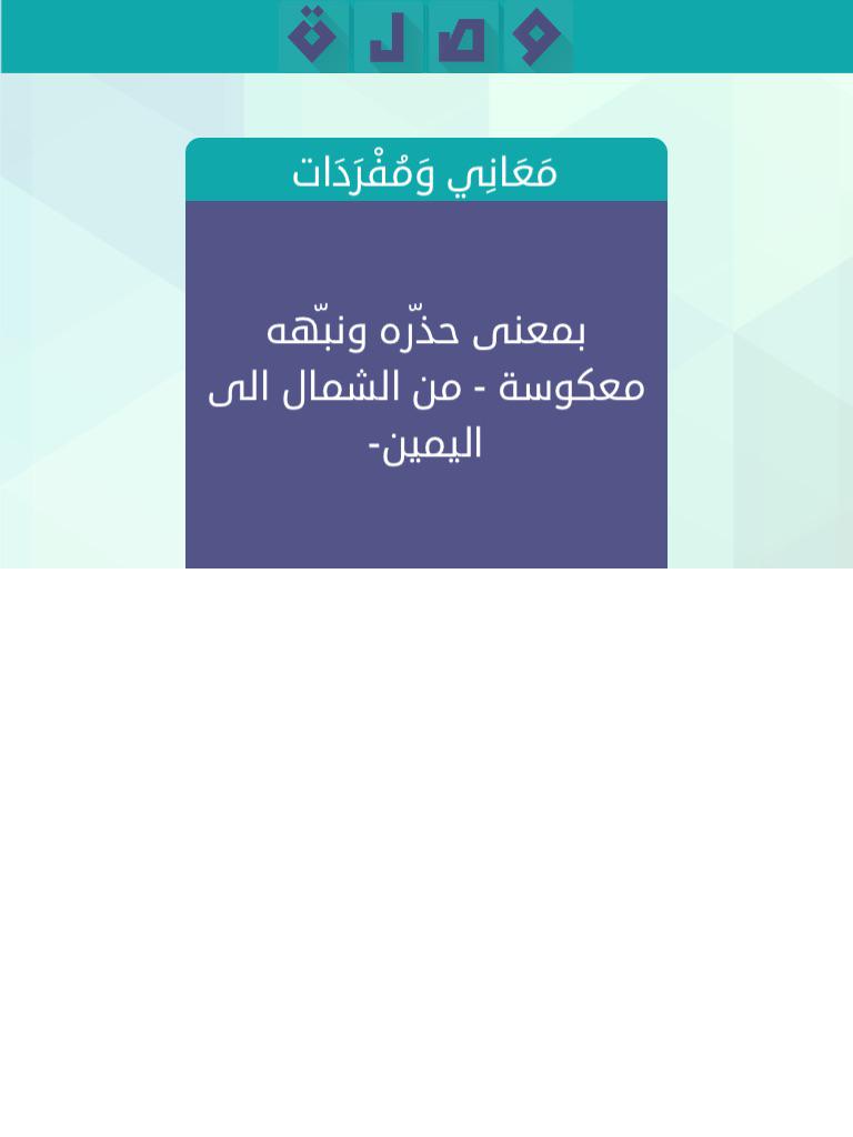 تم الإجابة عليه بمعنى حذره ونبهه معكوسة من الشمال الى اليمين من 5 حروف لعبة وصلة