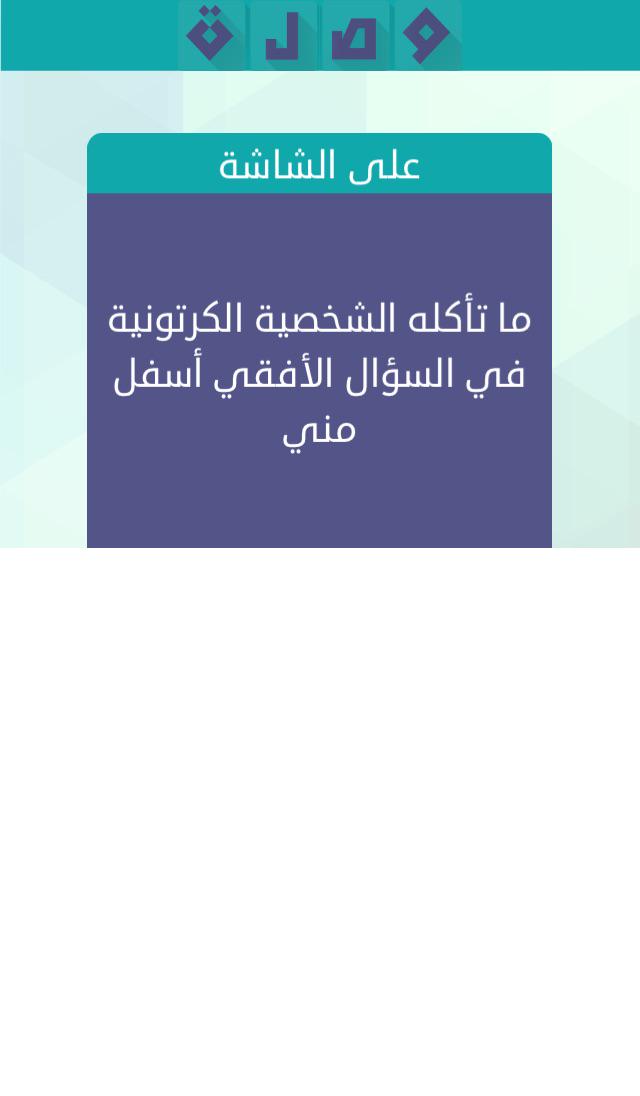 جواب ما تاكله الشخصية الكرتونية فى السؤال الافقى اسفل منى لغز رقم 26 من لعبة وصلة للمجموعة الثالثة صقور الإبدآع